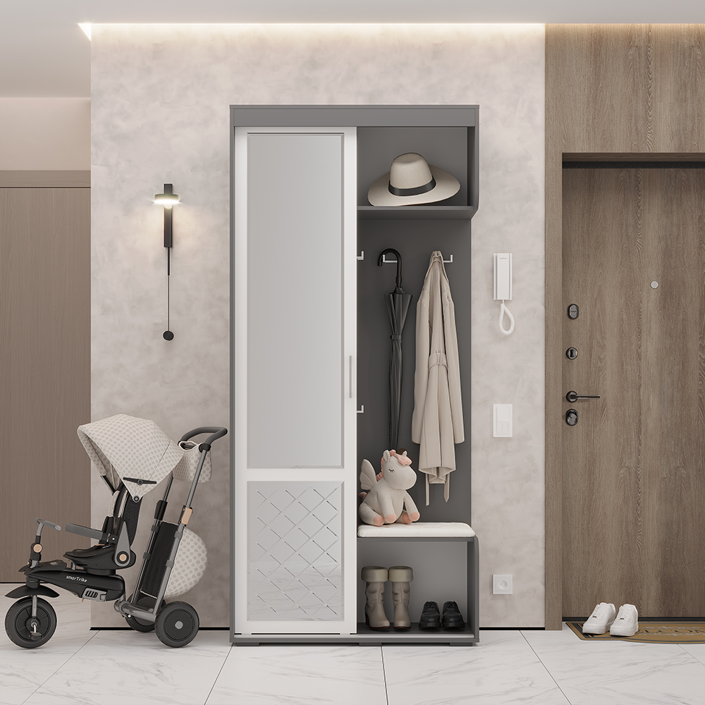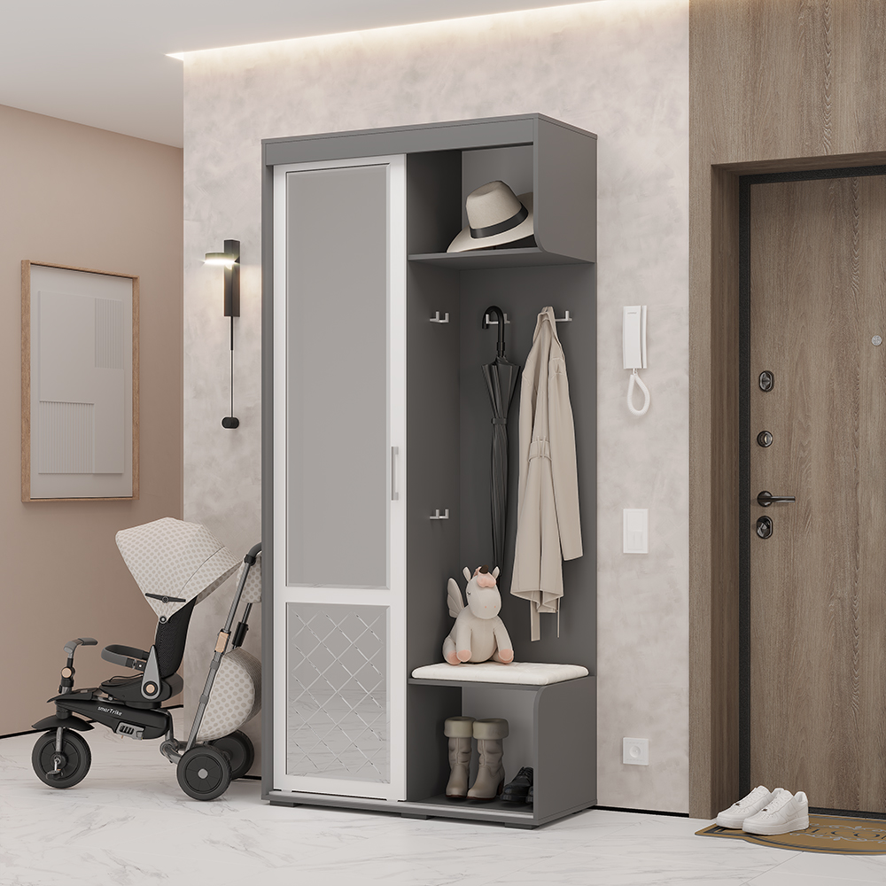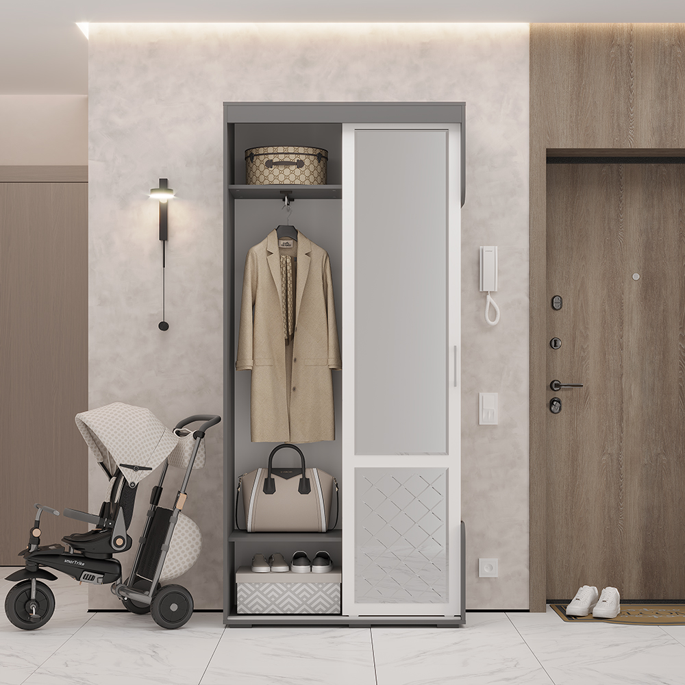 Современная прихожая «Вarda» от производителя БТС — это комфорт и стиль вашего дома! Высококачественные материалы обеспечивают надежность конструкции (высота 2176 мм, ширина 1002 мм, глубина 444 мм). Эргономичный дизайн позволяет максимально эффективно использовать пространство даже небольших помещений. Удобные полки и вместительные шкафы помогут аккуратно разместить обувь, одежду и аксессуары, поддерживая порядок и уют в доме.